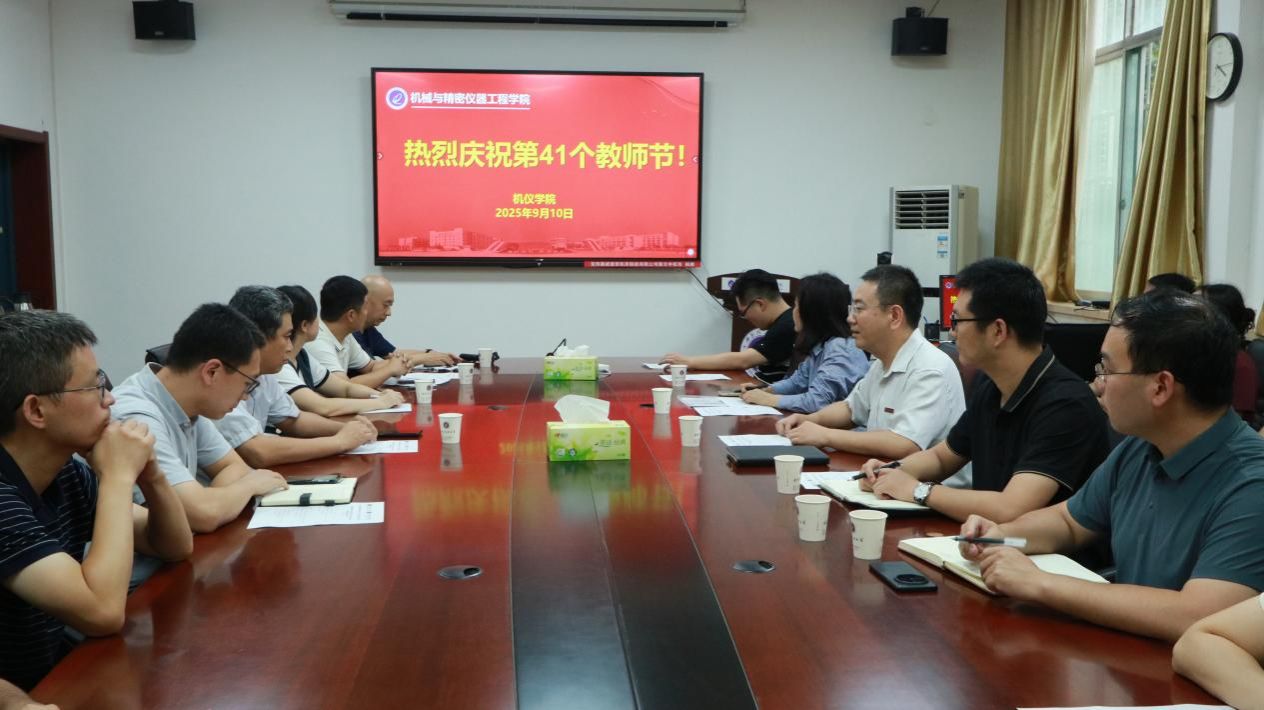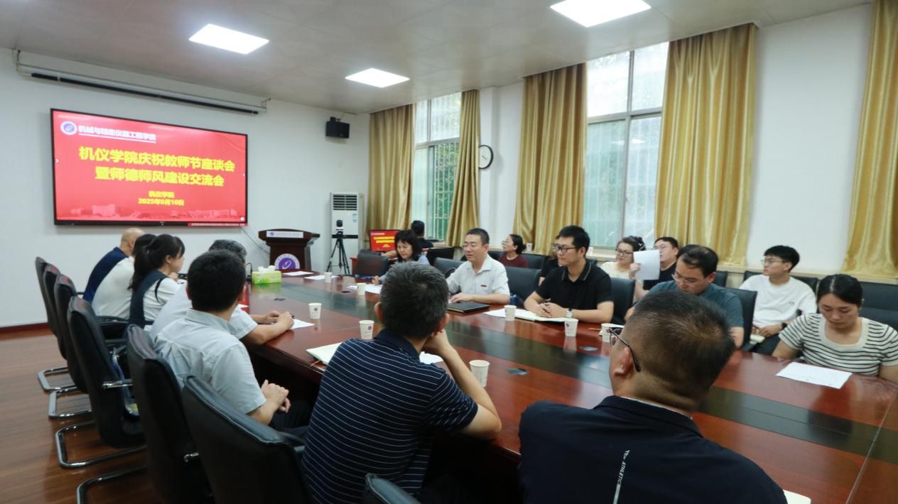 9月11日下午,机仪学院在学院会议室举行了“以教育家精神铸魂强师 谱写教育强国建设华章”为主题的庆祝第41个教师节座谈会暨师德师风建设交流会。学院班子成员、工会主席、系室主任与青年教师代表等齐聚一堂,通过系列学习与交流活动,重温光辉历史,坚定理想信念,凝聚奋进力量,共同开启新学期新征程。会议由学院党委书记董鹏刚主持。