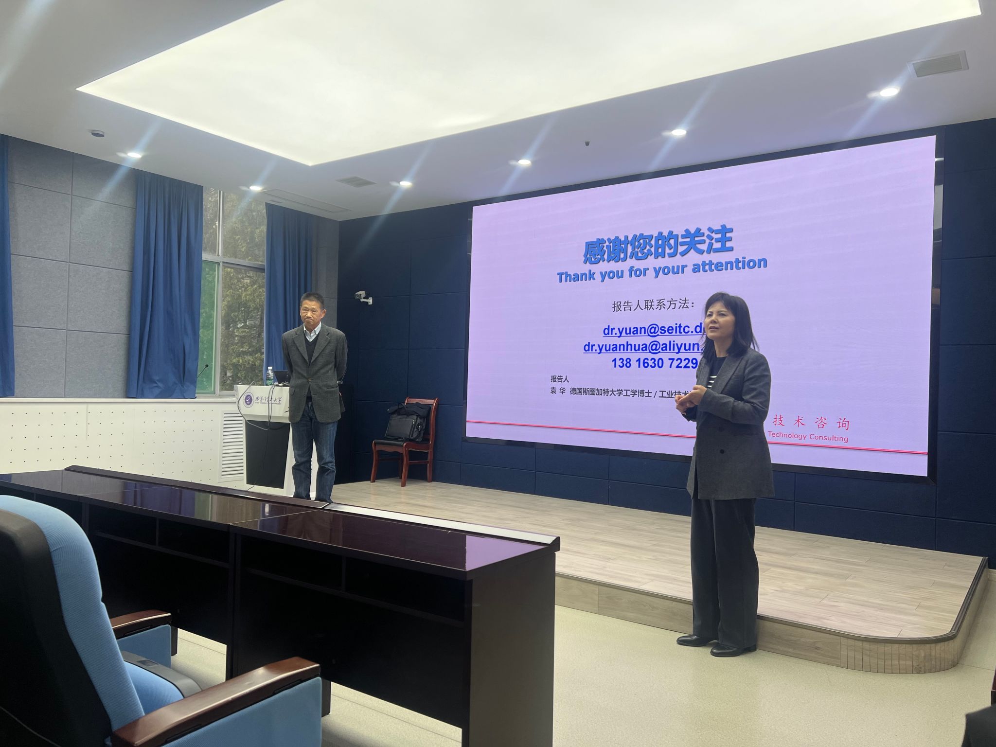 10月20日下午,德国斯图加特大学工学博士、资深机械制造专家、资深工业技术咨询专家、同济大学和合肥工业大学客座教授袁华博士,应邀来我院开展学术交流,在1-302多媒体报告厅作了题为《借鉴德国成功经验,构建我国机械制造业的可持续竞争力》的专题报告。报告由机仪学院院长李淑娟教授主持,机仪学院机械制造装备方向教师、研究生以及数十位企业专家参与交流。