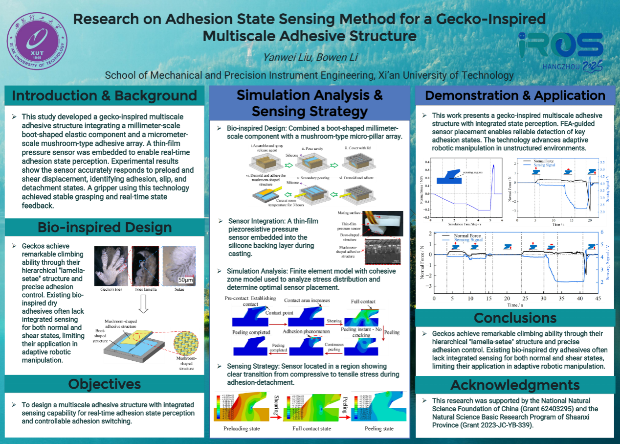 2025年10月20日至24日,机械工程学院教师刘彦伟与研究生李博文赴杭州参加了2025 IEEE/RSJ智能机器人与系统国际会议(IROS 2025)。作为机器人研究领域的顶级学术盛会,本届IROS共吸引了全球逾8000名学者与学生齐聚一堂,共探机器人前沿科技。